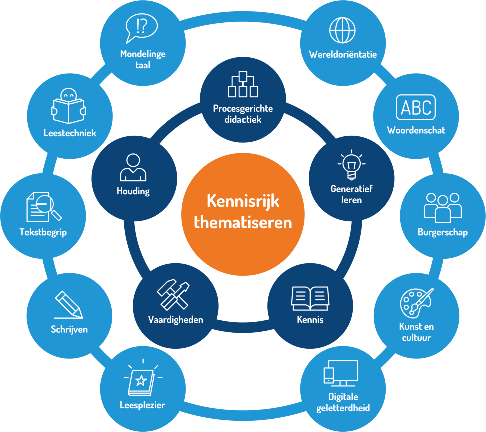 Steeds meer scholen kiezen ervoor om taal en lezen te verweven met kennisrijke thema’s. Maar hoe geef je daar in de dagelijkse praktijk vorm aan? Hoe werk je toe naar het lezen en begrijpen van een rijke tekst, en hoe benut je daarbij de overige taaldoelen?