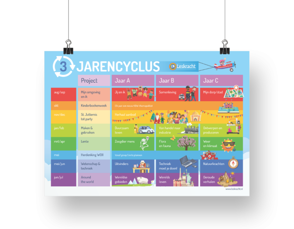 De leerkracht heeft de vrijheid om zelf te kiezen welk wereldoriëntatieonderwerp hij/zij aan de les wil koppelen. Dit kan met de Leskrachtthema’s als basis, maar ook met een andere wereldoriëntatie methode of werkwijze.